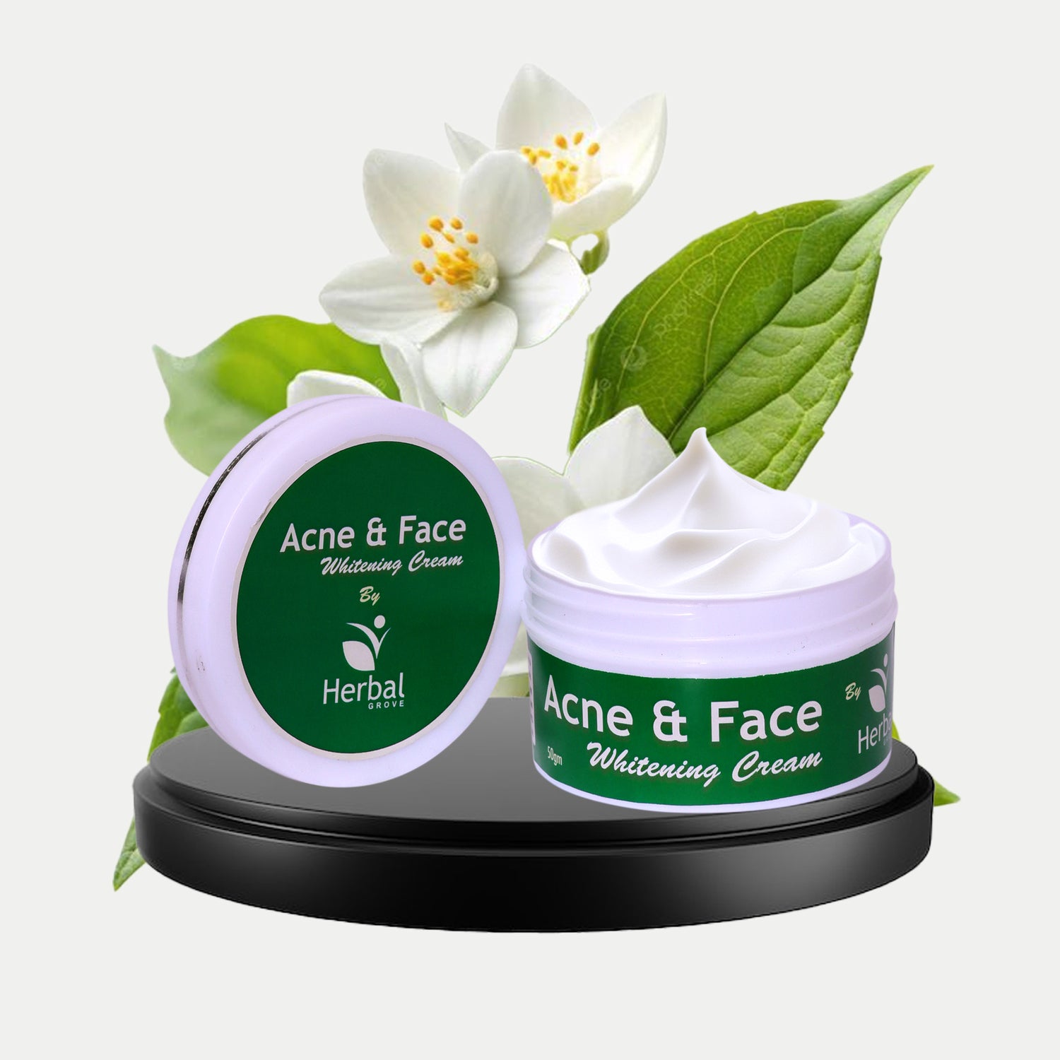 Uncover your skin’s natural brilliance with Herbal Grove Acne & Face Whitening Cream—a soothing yet effective fusion of nature’s best herbs. Specially formulated to combat acne, lighten dark spots, and brighten the complexion, this all-in-one cream gently transforms your skin without harsh ingredients. Embrace a smoother, clearer, and more radiant look—naturally.